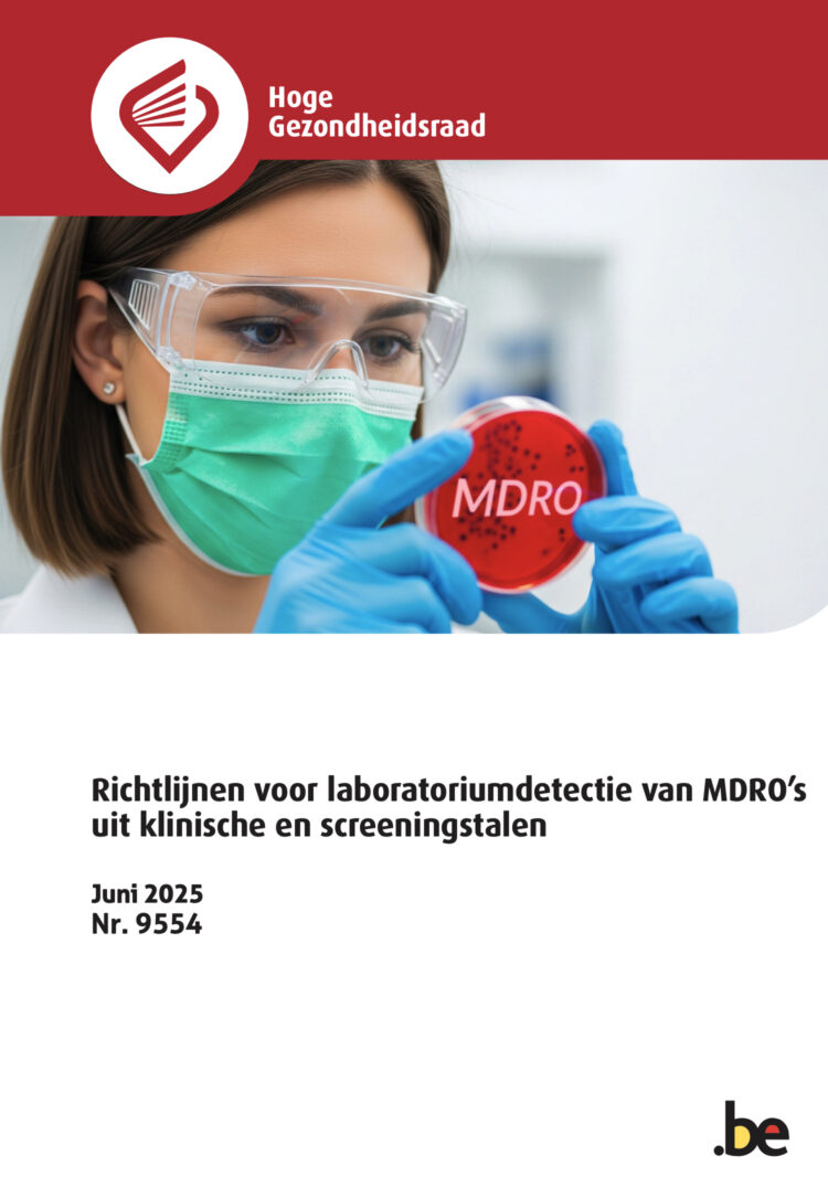 De bestrijding van zorginfecties staat of valt met een snelle en betrouwbare detectie van multiresistente micro-organismen (MDRO’s: Multi-drug resistant organisms). Deze richtlijnen van de Hoge Gezondheidsraad (HGR) bieden gestandaardiseerde aanbevelingen voor de laboratoriumdetectie van MDRO’s in klinische en screeningstalen. Als aanvulling op de richtlijnen van de HGR van 2019 (HGR 2019) over de preventie, beheersing en aanpak van MDRO’s in Belgische zorginstellingen, richt dit document zich specifiek op de laboratoriummethodologieën voor een nauwkeurige diagnose van MDROinfectie of -kolonisatie. Het is bedoeld voor klinisch microbiologen, laboratoriumpersoneel, deskundigen infectiepreventie en specialisten infectieziekten.
