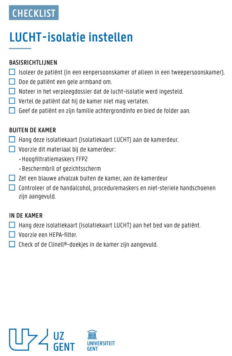 In dit artikel lichten we de rationale achter het vernieuwde isolatiebeleid van het UZ Gent toe en beschrijven we het proces van ontwikkeling en implementatie.