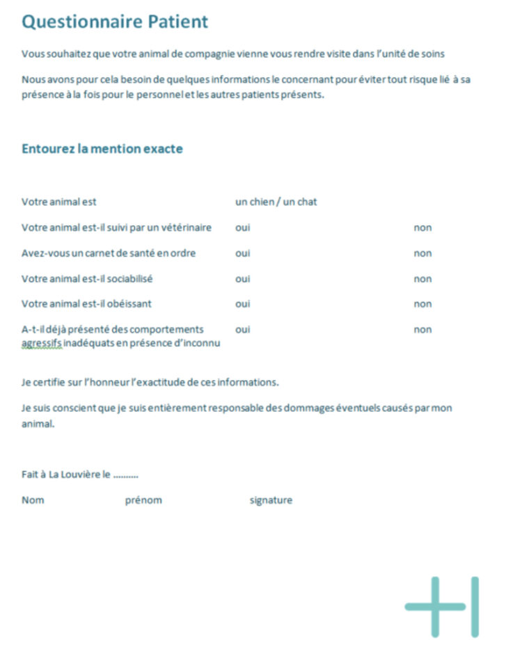 L’Hôpital et l’équipe soignante se réserve le droit de refuser ou d’interrompre les visites de l’animal de compagnie si :